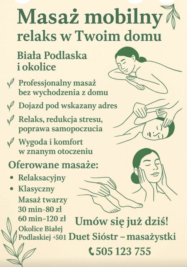 Masujemy stacjonarnie lub z dojazdem, cena dojazdu uzależniona od odległości